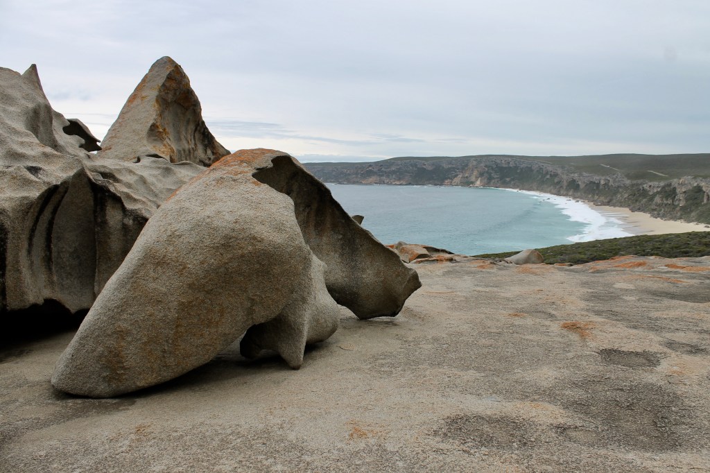 And sitting atop the far end of the beach cliffs we are overlooking is one of nature’s most amazing granite dome creations (and one of the most advertised images of Australia), the Remarkable Rocks: