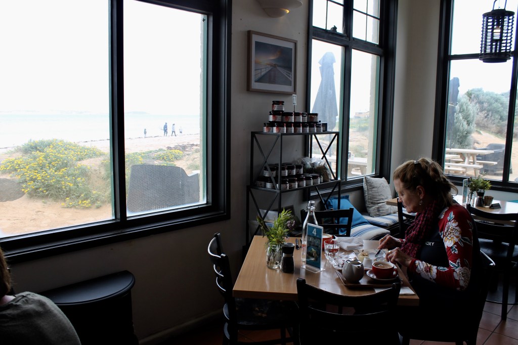 We were lucky this morning at the cafe that serves the ferry to Phillip Island. It was not yet noon, so they were still serving breakfast. Dawn usually prefers a lunch to a brunch and she found a chicken and leak pie with a nice flakey crust (which tasted like chicken pot pie with leaks) in a cabinet. The cafe had a limited breakfast selection and I had to settle for what the menu called a bacon and egg sandwich. But this was not McDonalds. It came on what Australians call Turkish bread (like a small French bread loaf but very moist) with a soft fried egg, two layers of fried ham and a tomato relish spread. It was delicious, so at least one meal today was satisfactory. And the Cafe had a great view of the port.