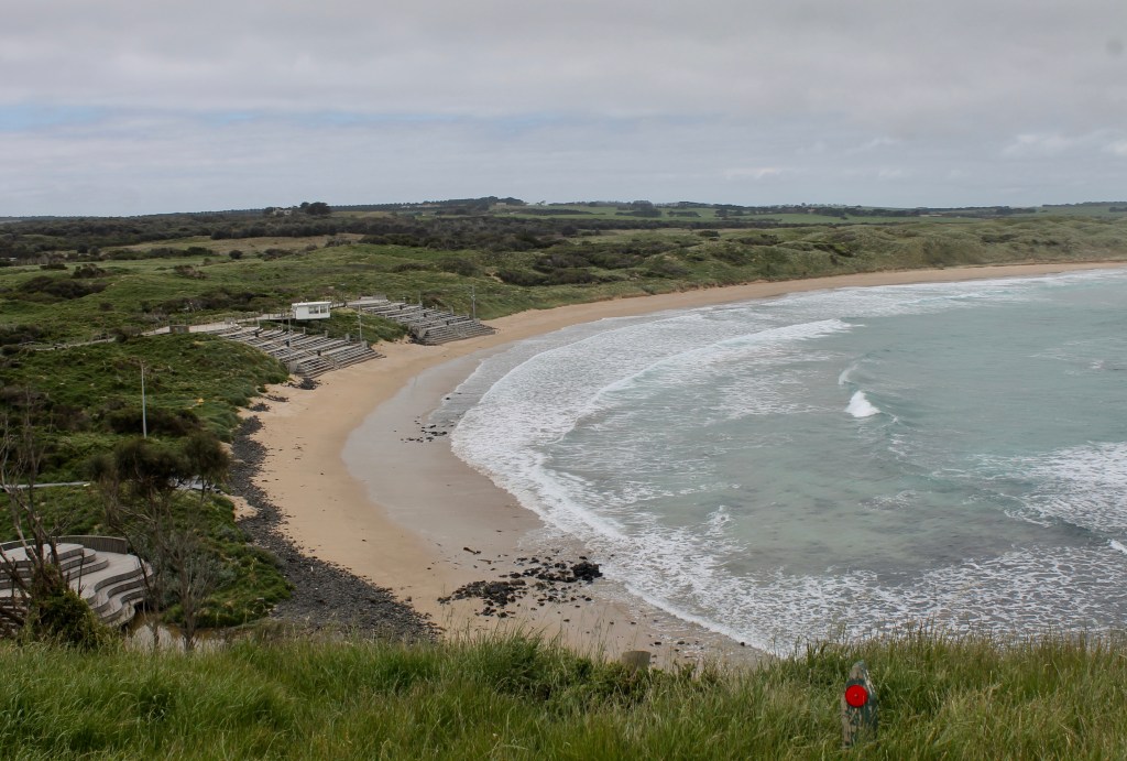 Because the penguins’ eyes are sensitive to light, Penguin Parade attendees are not permitted to take pictures as hundreds of penguins arrive at dusk. At about 8pm this time of the year, the penguins simply emerge from the shore line in batches of 40 to 50 each “wave” and cross the beach. They find their mate (penguins mate each season, not for life, and their “divorce rate” is estimated at 50%), preen their feathers with a gland to add air (waterproofing), and then head into the hills from which we took the picture above to find the burrows where their chicks are waiting. The adults make a guttural sound to announce their return and the chicks chirp to give the adults location signals. But we would have to wait several hours for the event to begin.