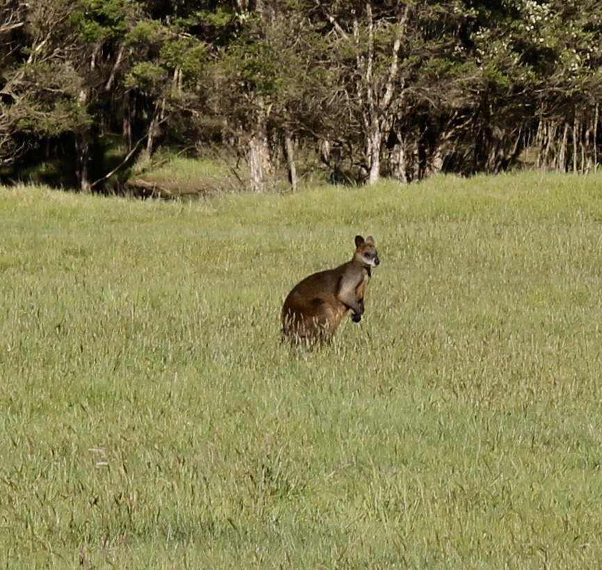 Dawn decided to take a nap while we waiting for dusk to arrive. I drove to a nearby estuary featuring a boardwalk into the mangroves. Phillip Island has its own subspecies of wallaby, known as the swamp or black wallaby. The ones on Kangaroos Island are tammar wallabies. It was late enough that the swamp wallabies decided to come out for an early dinner (this was just one of about six that were in the field).