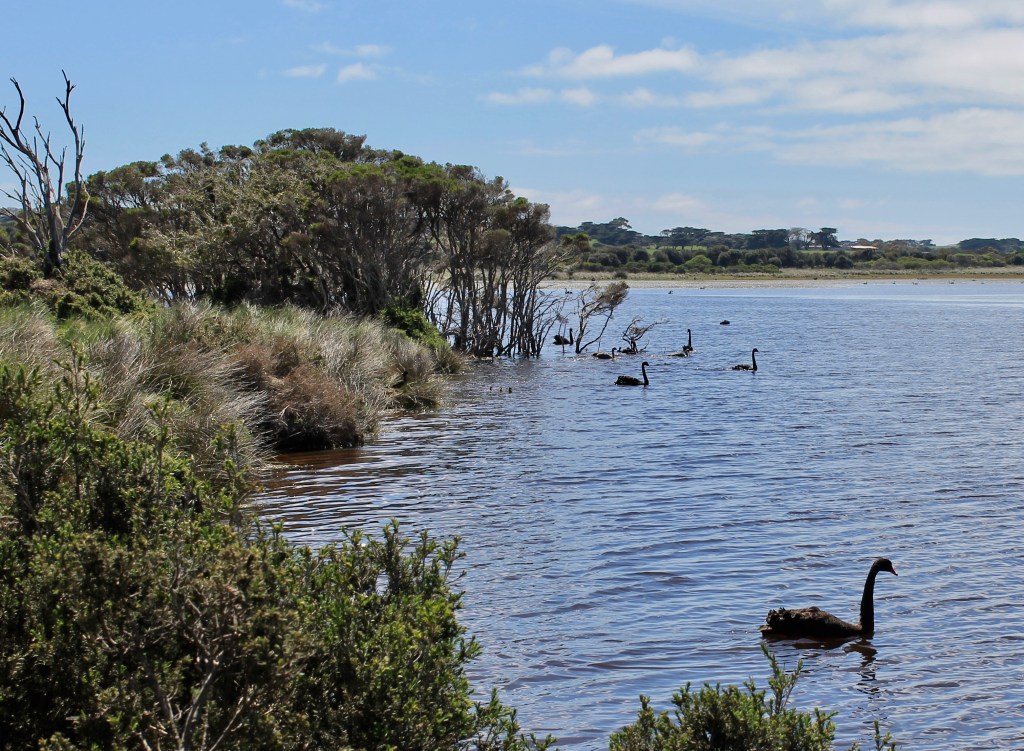 We finally got to Swan Lake where we spotted dozens of black swans (and their chicks), black ducks, a royal spoonbill, and a little black cormorant. And of course, there were dozens of Cape Barren geese.