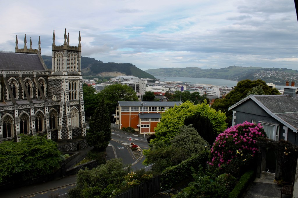 This was just a quick stop before we headed for Dunedin (pronounced Dun-eden), the second largest city in the South Island of NZ, and just a little smaller than Cary, NC, in population at 120,000. Founded by Scotts in 1848, the name is a corruption of the Gaelic name for Edinburgh, Scotland. It became quite wealthy with the discovery of gold nearby and was the largest city in NZ in the late 1800’s. The nephew of Robert Burns was the first Reverend for the new city, which is now famous for it Victorian and Edwardian architecture (particularly after similar architecture in Christchurch was destroyed by the earthquake).