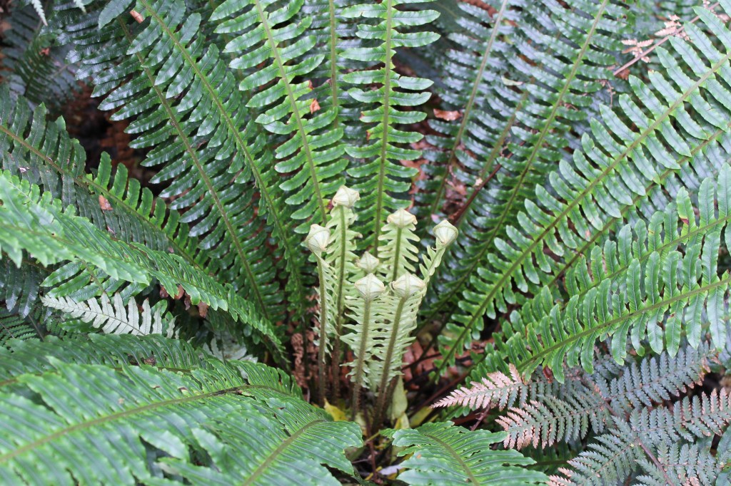 As long as the kaka kept his presence in the tree, the bellbirds had a feast at the feeders and the tui stayed in the tree. But once the kaka flew off into the forest, the tui chased the bellbirds away. The tree ferns were begining to sprout, so I had to get a plant picture. Then we headed for Christchurch.