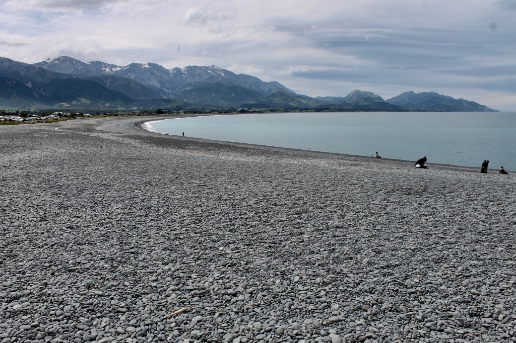 Fyfffe Country Lodge where we are staying was closed for two years for repairs. There are still buildings under construction in the CBD. But like Christchurch, these folks are back and open for business. The long beach in town is composed of grey stone pebbles. At the head of the peninsula around which the town is built is a white rocky outcrop with a huge seal colony. To the south of the peninsula is a black stone beach. So you have a choice of colors for your beach (but don’t expect any sand).