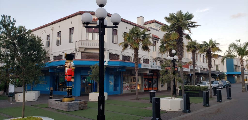 It turns out that Napier, founded in 1855, was an ideal place for a port for the growing region. But in 1931, its brick buildings were completely destroyed by an earthquake (one newpaper wrote that “Napier as a town has been wiped off the map”). The earth movement was so severe that old land surveys were meaningless (and had been destroyed in the fire that followed the earthquake). So with a clean canvass, they widened the streets and rebuilt the CBD in an art deco style. Napier is now known as the Art Deco Capital of the World. And we figured this out when we tried to find a place for dinner.