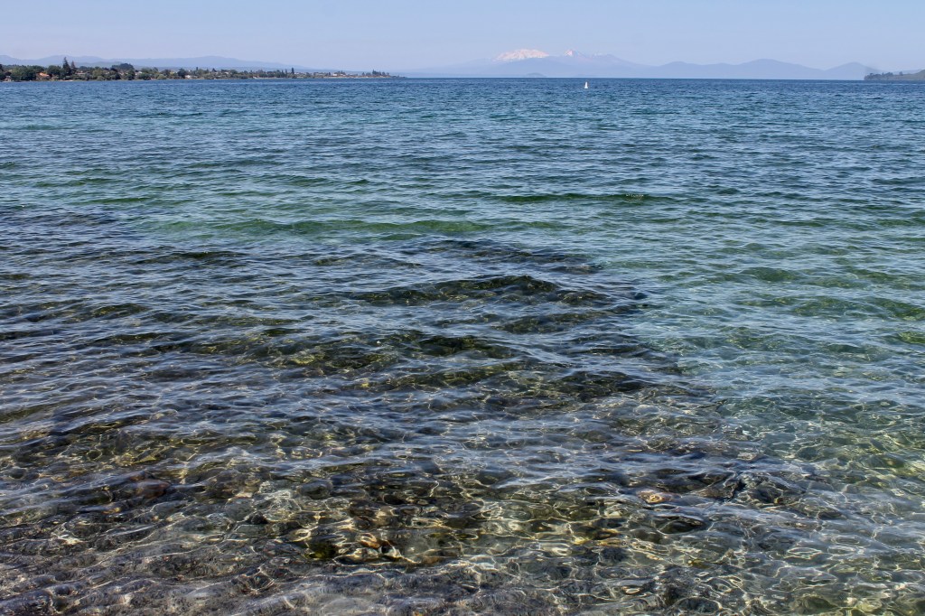 We decided to stop in Taupo for lunch based on the recommendation of Lena’s friend, Lauren. The city sits at the top of Lake Taupo, NZ’s largest lake by surface area (Lake Te Anau is larger by volume because it is much deeper). Like Lake Te Anau, Lake Taupo has snow capped peaks (but these are a little more distant.