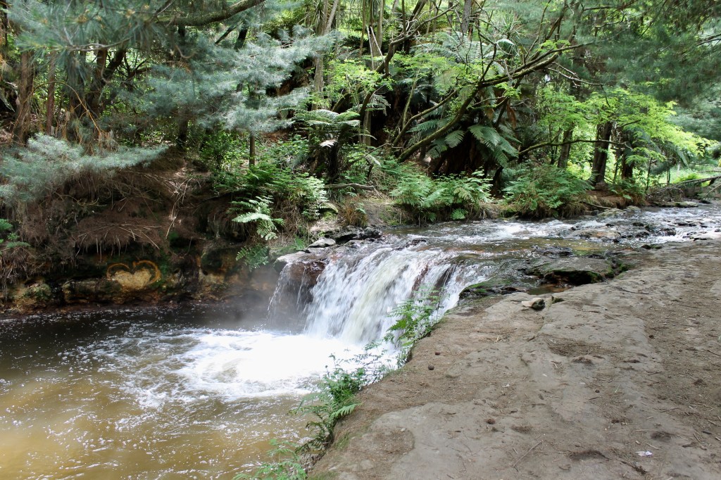 The waitress in Taupo recommended that we drive out to Kerosene Creek, a free recreation are south of Rotorua (we passed it on the way into town). We had to drive a couple of kilometers down a fairly rough dirt road (I had visions of being in Tasmania) but a couple from Wisconsin told us the creek would be worth the hard road. Not far from the carpark (parking lot in English), we came upon a mountain steam and followed it to a small waterfall and pool.