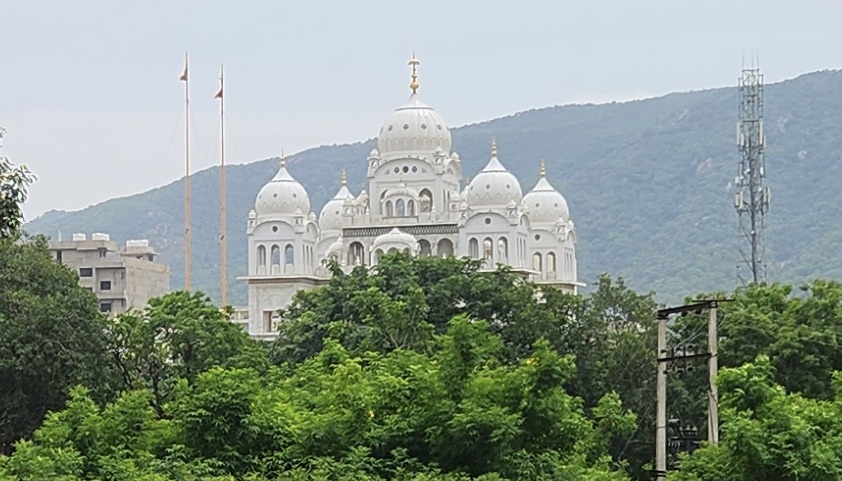 On the outskirts of downtown, we came upon an almost empty Sikh Gurudwara (which is a combination of temple and gathering hall), the Singh Sabha. It celebrates the visit to Pushkar Lake of two famous Sikh Gurus, one in 1509 and the second in 1706. Sikhism is a religion (and philosophy) that originated in the Punjab region of India in the 15th Century. Not derived from any other religion, it is one of the most recently founded major religious groups with about 30 million adherents worldwide. In India, Christians represent the third largest religion (at 2.3%), closely followed by Sikhism (at 1.7%), while Buddism is at 0.7%, and Jainism at 0.4% (see my discussion of Jainism in Mumbai). Sikhism evolved at a time of religious persecution (the Mughal emperors executed two early Sikh gurus who refused to convert to Islam) and gained converts from both Hinduism and Islam. Its founders opposed the Hindu caste system, monastic life, and animal sacrifices. The only diet prohibition is the eating of meat that has been ritually slaughtered (like Halal or Kosher meats). Monotheistic, the Sikh God is neither male or female and the creator and creation are considererd one and the same. The founding Gurus taught that all men and women, rich and poor and all races and faiths are equal under God. Sikh scripture repudiates belief in a physical place called Heaven or Hell (or a Judgment Day). The most commonly known Sikh requirement is the mandatory wearing of a turban. The turban is not just a relgious symbol, it is the identity of a Sikh.