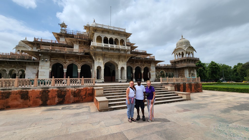 The Pink City was our favorite destination In North India, not just because of the planned city within those ancient walls, but the food, the Heritage Hotel and the vibe of the city. We had some time during our last day in Jaipur before our flight back to Mumbai, so we decided to visit the Central Museum, also known as the Albert Hall Museum. Designed by the British chief engineer of Jaipur at the time, the building is considered a fine example of Indo-Saracenic architecture (a revivalist Indo-Islamic style common to government buildings built during the British Raj.) It is not named for British Queen Victoria’s husband Albert, but in honor of the Prince of Wales (“Albert Edward”), later King Edward VII, who laid the foundation stone during his state visit to Jaipur in 1876. Raja Ram Singh II (who had ordered Jaipur’s buildings painted pink for the Prince of Wales’ visit) wanted the building to be used as a town hall, but he died in 1880 during its construction. His successor, Raja Madho Singh II, hosted the Jaipur Exhibition of 1883, displaying the finest examples of the Raja’s collection of industrial crafts. Rudyard Kipling expressed a scholarly appreciation for the new municipal building’s architecture in the Journal of Indian Art and Industry in 1885. The success of the industrial crafts exhibit led Madho Singh II to decide the new building should instead house a permanent museum for the industrial crafts and the other art of Jaipur. So the building was opened as public museum in 1887. It is the oldest museum of the state and functions as the state museum of Rajasthan. It quickly became famous world wide for its innovations, including the appointment of guides to conduct tours and museum hours only for women on Fridays (at a time when many Indian women were still subject to seclusion from male eyes). By 1898, it had already been visited by in excess of three million people. Interestingly in view of the name changes for other British Raj era buildings, there have only recently been BJP and Congress party arguments about changing the name, although one politician was quoted as saying he was only “jokingly” suggesting a name change.