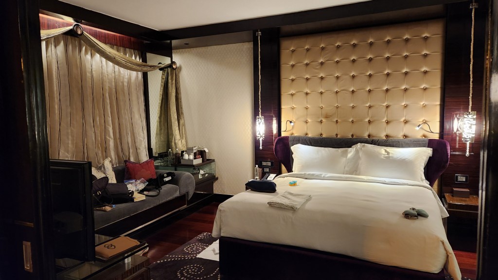 However, that is not Lena’s idea of a fun day and the airport was calling us. So we took our last ride in the van (a usual size but it had felt small after our Sprinter experience in Kerala) and said goodbye to our driver and North India. We landed in Mumbai in the evening and all of us were pretty tired. Our first Mumbai hotel was fully booked, so we stayed a little further away from Kingston’s family. Imagine our surprise when we got to our room. It was a suite. Unfortunately, we would only have one night in this room, unlike our three nights at the Heritage Hotel in Jaipur. But I ended up liking the breakfast buffet at the other Mumbai hotel better.