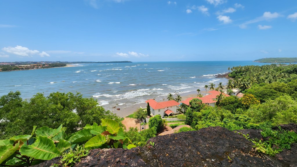 Our hotel was on Candolim Beach aong the Arabian Sea, just north of Fort Aguada and on the opposite side of the Mandovi River from Panaji, the capital of Goa (and the last former Portuguese capital). Our day would end in Panaji, but first we stopped at another ancient fort that guarded the sea approach to the site of Panaji.