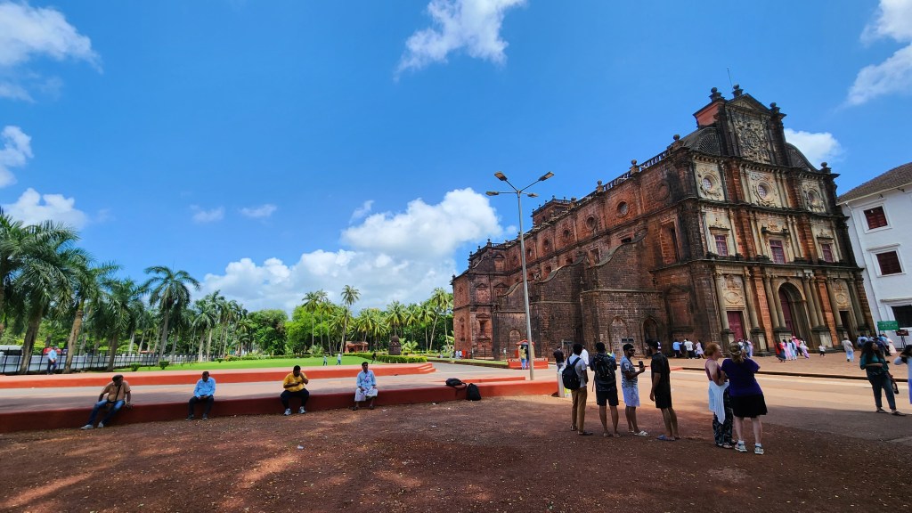 We next headed over the Mandovi River Bridge to the opposite bank of the Mandovi River. Our destination was Old Goa (formerly the City of Goa), the original capital of Portuguese Goa. Founded in the 15th Century by the Muslim Bijapur Sultanate (a member of the Deccan Sultanate), it was conquered by the Portuguese in 1510. Under Portuguese rule, the spice trade conducted through the deep water port on the Mandovi River grew Goa to a city of nearly 200,000 people by 1543. But malaria and cholera epidemics ravaged the population over the next 200 years and the city was largely abandoned. In 1759, the Viceroy created a new city, Panaji, about 5.5 miles west closer to the banks of the Mandovi River. By 1775, the City of Goa’s population had fallen to less than 1,500; however, it remained the Portuguese capital until 1843, when the capital was formally shifted to Panaji and the City of Goa became known as Old Goa.