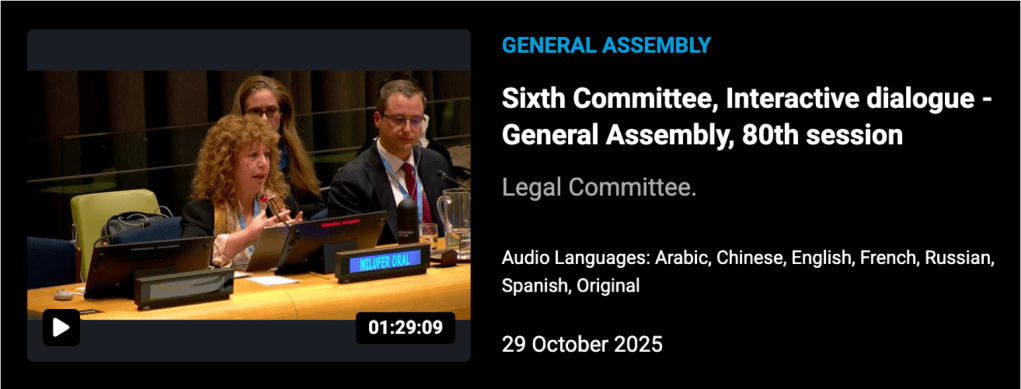 - General Assembly Sixth (Legal) Committee recordings: https://webtv.un.org/en/search/categories/meetings-events/general-assembly/80th-session/sixth-committee